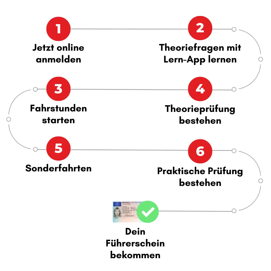 Wir möchten dir den Kopf freihalten, daher übernehmen wir für dich den Fahrerlaubnisantrag. Für dich bedeutet es, dass du dich ganz auf deinen Führerschein konzentrieren kannst. Alles an einem Tag und Ort!