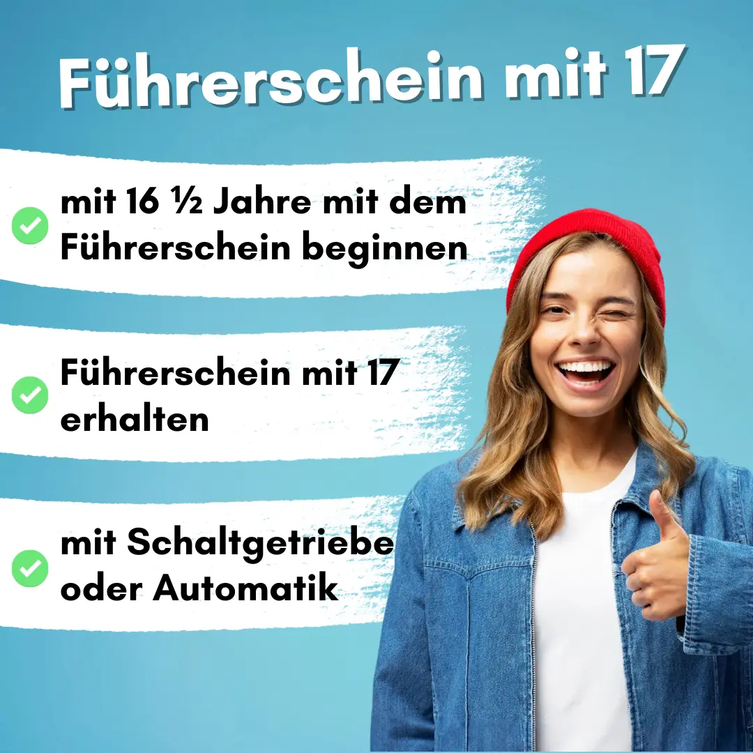 Kein Problem! Bei der Fahrschule Exakt kannst du bereits 6 Monate vor deinem 17. Geburtstag voll durchstarten und dir deine Freiheit sichern.